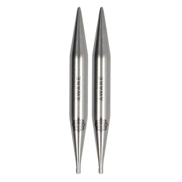 Gładko wykończone końcówki wykonane z trwałej, nadającej się do recyklingu stali nierdzewnej. Stopniowo zwężająca się końcówka pozwala drutom łatwo przechodzić przez oczka. Oprócz oznaczenia rozmiaru, każdy drut zawiera również inspirujące słowo, które pomaga skupić się na chwili obecnej.