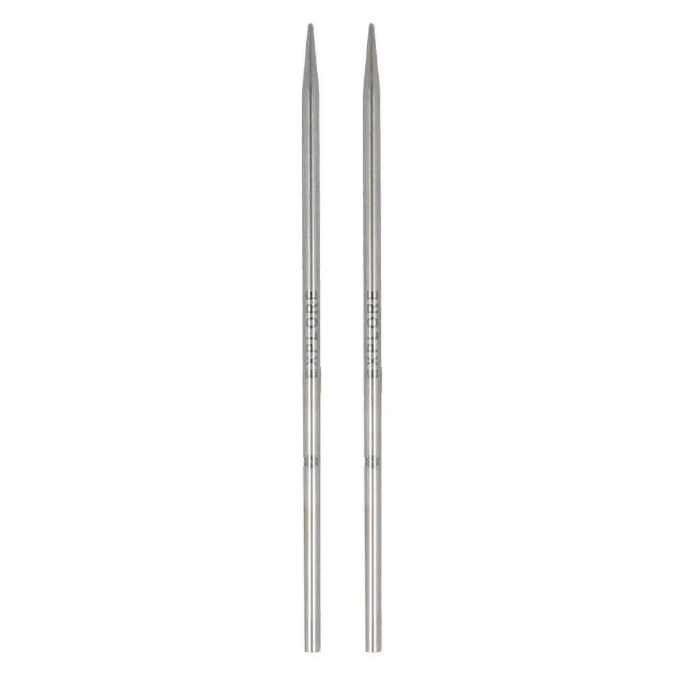 Gładko wykończone końcówki wykonane z trwałej, nadającej się do recyklingu stali nierdzewnej. Stopniowo zwężająca się końcówka pozwala drutom łatwo przechodzić przez oczka. Oprócz oznaczenia rozmiaru, każdy drut zawiera również inspirujące słowo, które pomaga skupić się na chwili obecnej.