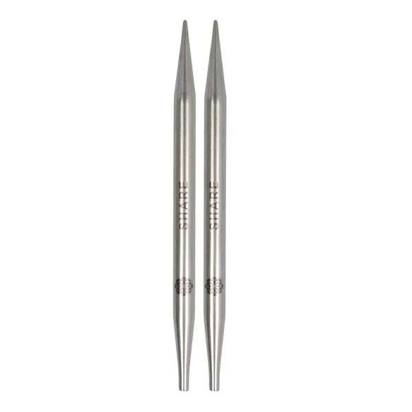 Gładko wykończone końcówki wykonane z trwałej, nadającej się do recyklingu stali nierdzewnej. Stopniowo zwężająca się końcówka pozwala drutom łatwo przechodzić przez oczka. Oprócz oznaczenia rozmiaru, każdy drut zawiera również inspirujące słowo, które pomaga skupić się na chwili obecnej.
