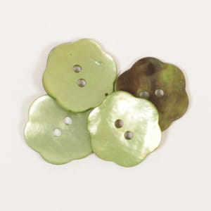 Guzik z masy perłowej w kształcie kwiatka o średnicy 25 mm. Kolor zielony.