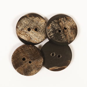 Rogowy, ciemny guzik z lekko zeszlifowanymi krawędziami, średnica 20 mm.