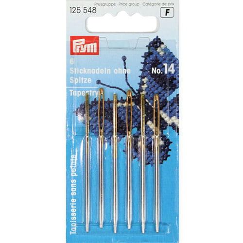 Zestaw 6 igieł do haftu bez czubka marki PRYM. Długość igieł to 3,7 cm. Numer 14.
