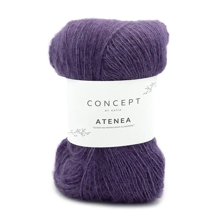 Katia Atenea to 25-gramowy motek miękkiej przędzy wykonanej z wełny merynosa, bawełny Mako i kaszmiru. Atenea to wykwintna włóczka, idealna do dziania bardzo lekkich ubrań w modnych kolorach, miękka w dotyku, z delikatnymi włoskami.