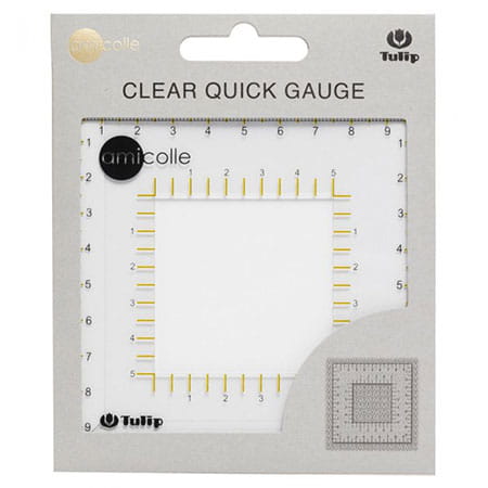 Plastikowa, przezroczysta miarko-linijka marki Clover. W kształcie kwadratu, środek jest pusty. Zewnętrzny wymiar 10cm.