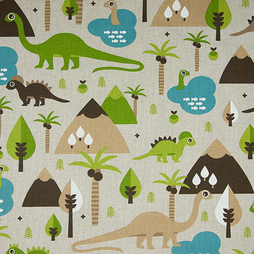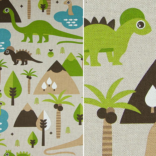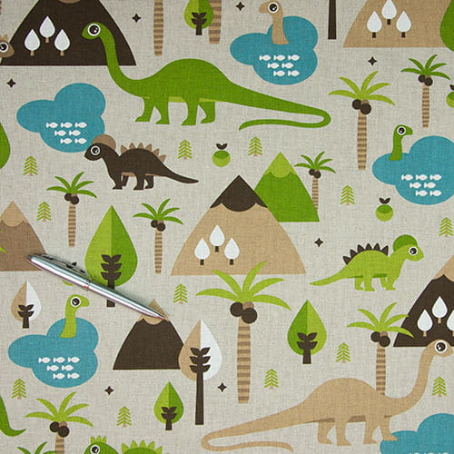 Materiał pół panama PREMIUM, z wzorem w dinozaury na tle wyglądem przypominający len. To świetny materiał na poduszki i torebki, nadaje się na bieżniki i obrusy i wiele innych dodatków do domu.