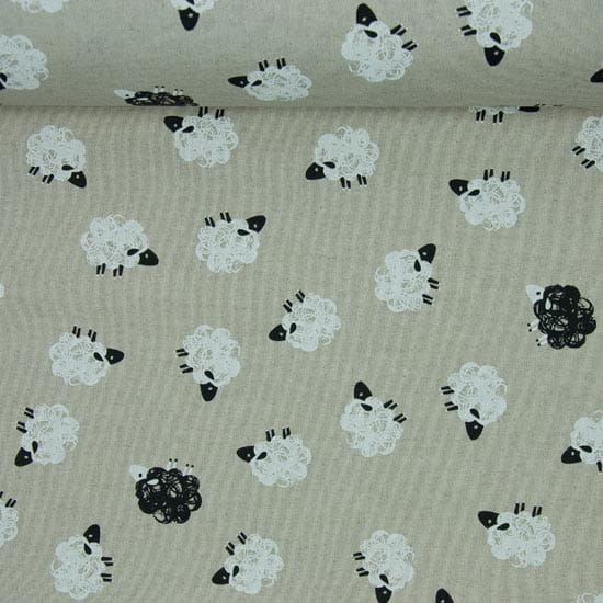 Materiał pół panama PREMIUM, z wzorem w białe i czarne owieczki na tle wyglądem przypominający len. To świetny materiał na poduszki i torebki, nadaje się na bieżniki i obrusy i wiele innych dodatków do domu.