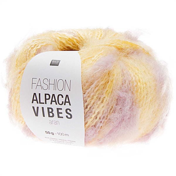 Włóczka Rico Design Alpaca Vibes charakteryzuje się harmonijnymi, niezwykłymi zestawieniami kolorystycznymi oraz specjalną strukturą. W nitkę skręconej włóczki wplecione są pasujące kolorystycznie nepy. W robótce tworzą się efektowne zgrubienia.