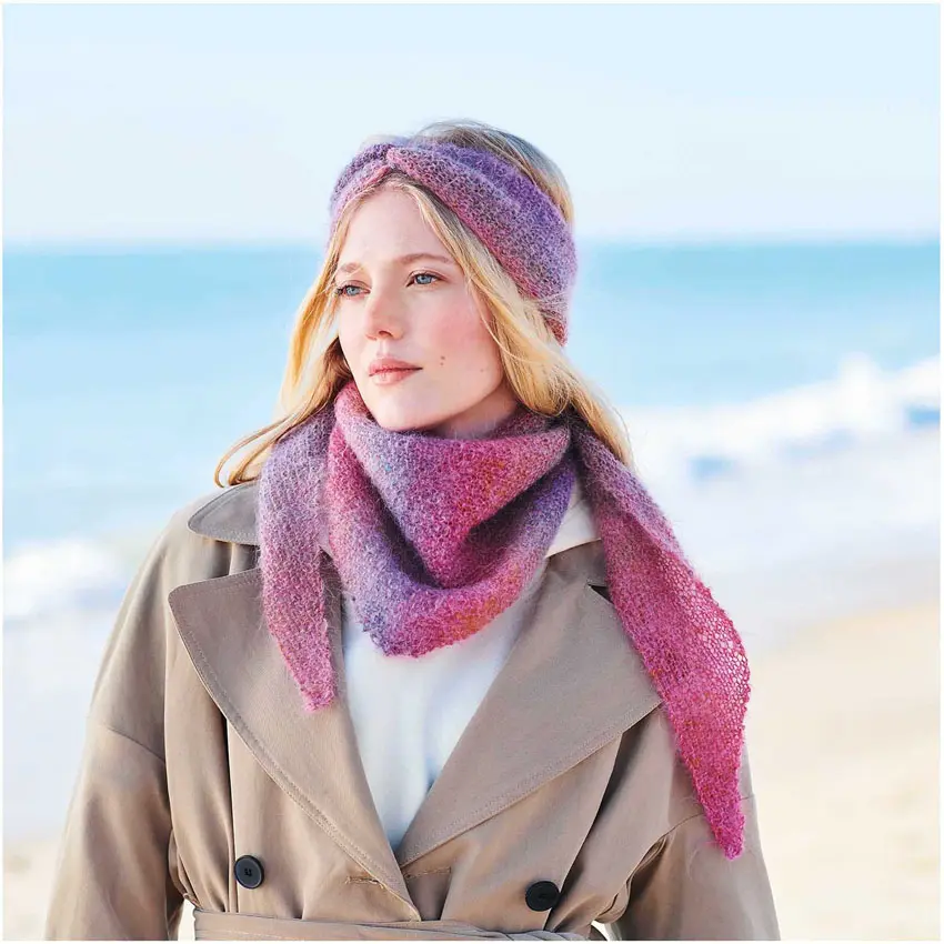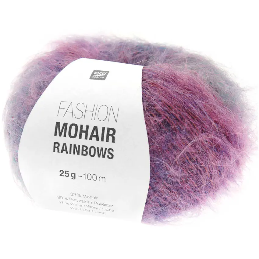 25g motek zawiera 100 metrów ciekawej włóczki Rico Mohair Rainbows, możesz przerabiać ją jako samodzielną nitkę lub dodać na przykład do naszych Ombre Rolls Merino, Efekt WOW murowany!