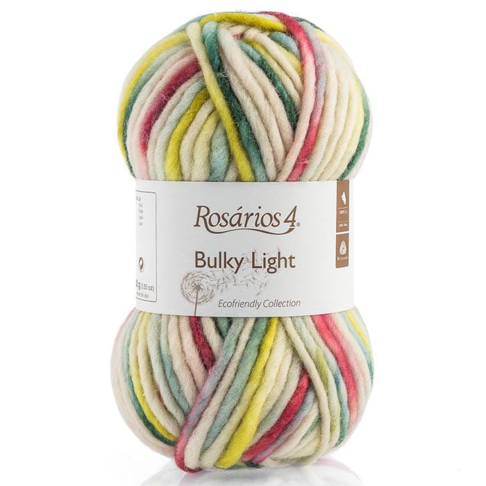 Rosarios 4 Bulky Light Print to gruba wełniana włóczka na druty w rozmiarze 12 milimetrów. To włóczka wielokolorowa, z fantastycznie dobieranymi kolorami.