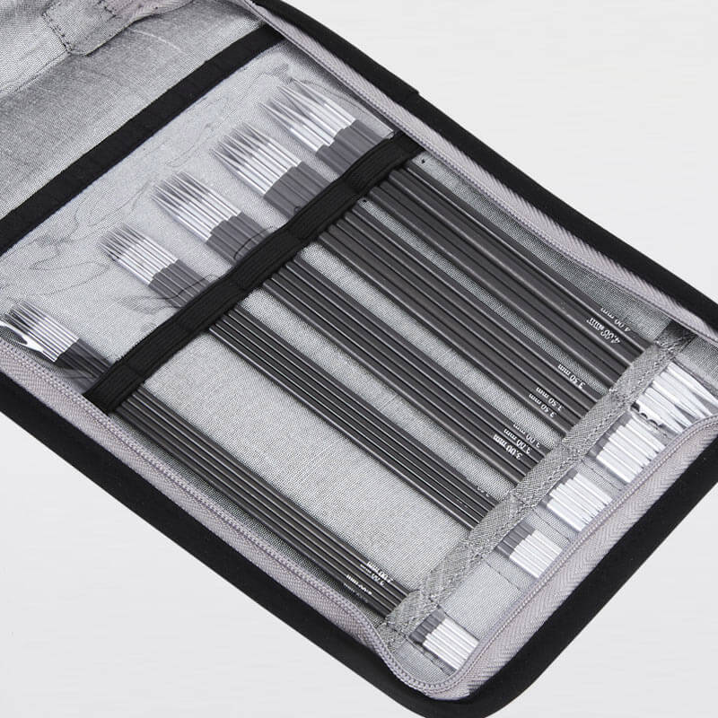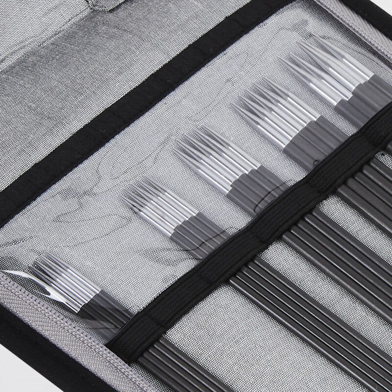 Zestaw drutów pończoszniczych o długości 20 cm KnitPro Karbonz z ekskluzywnymi, lekkimi drutami wykonanymi z włókna karbonowego.