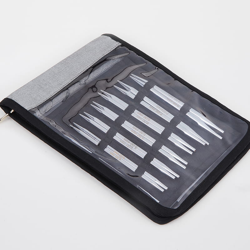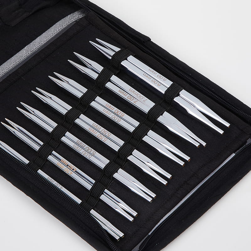 Zestaw drutów wymiennych KnitPro Nova Cubics Deluxe w 7 najpopularniejszych rozmiarach. Zapakowane w srebrno szare etui.